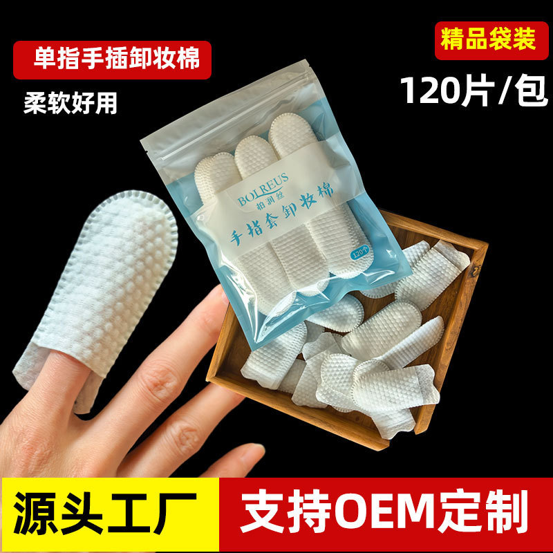 120枚袋入りシングルフィンガープラグインメイク落としコットン、ペットクリーニングフィンガーセット、80gパールパターンコットンシート