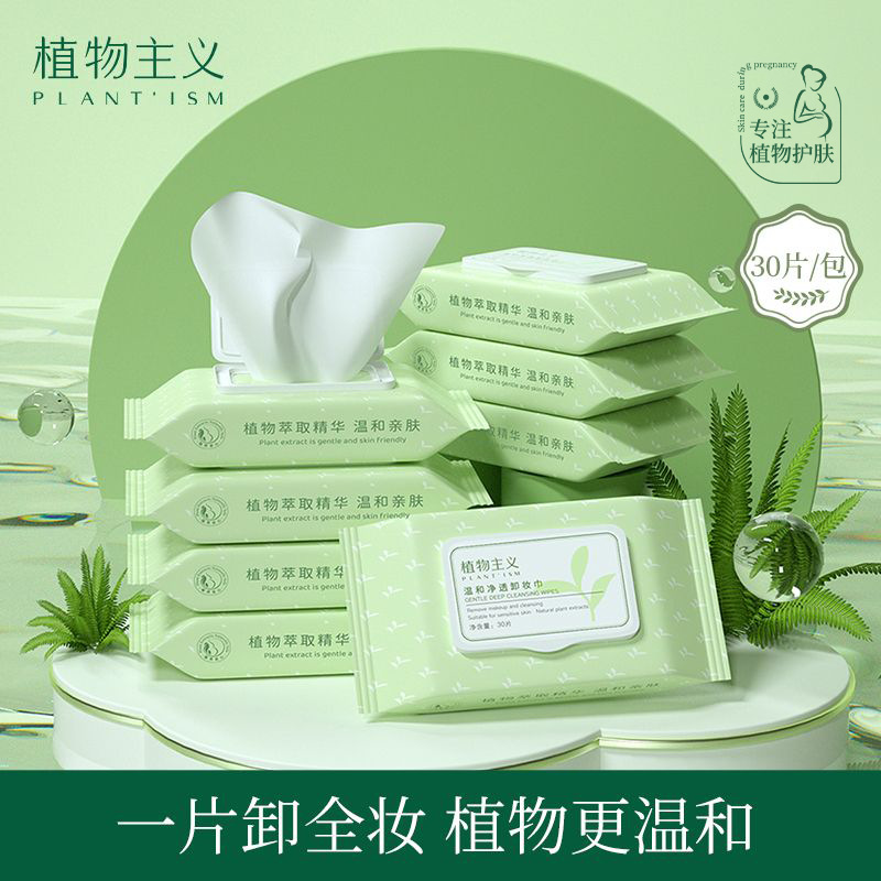 ボタニカルメイク落としワイプ、ディープクレンジング、個別包装、低刺激性、非刺激性の使い捨てメイクアップコットン