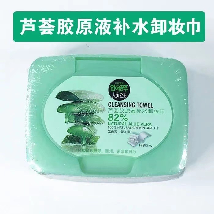 マーメイドプリンセス アロエベラ ディープフェイシャル ジェントルモイスチャライジング メイク落としワイプ 使い捨てメイク落としコットン 箱入り 128枚