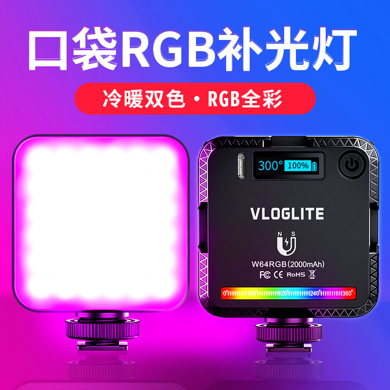 W64RGB ミニ軽量ポケットライト LED フィルライト美容ライブブロードキャスト写真ビデオ会議ライトフィルライトコンピュータ