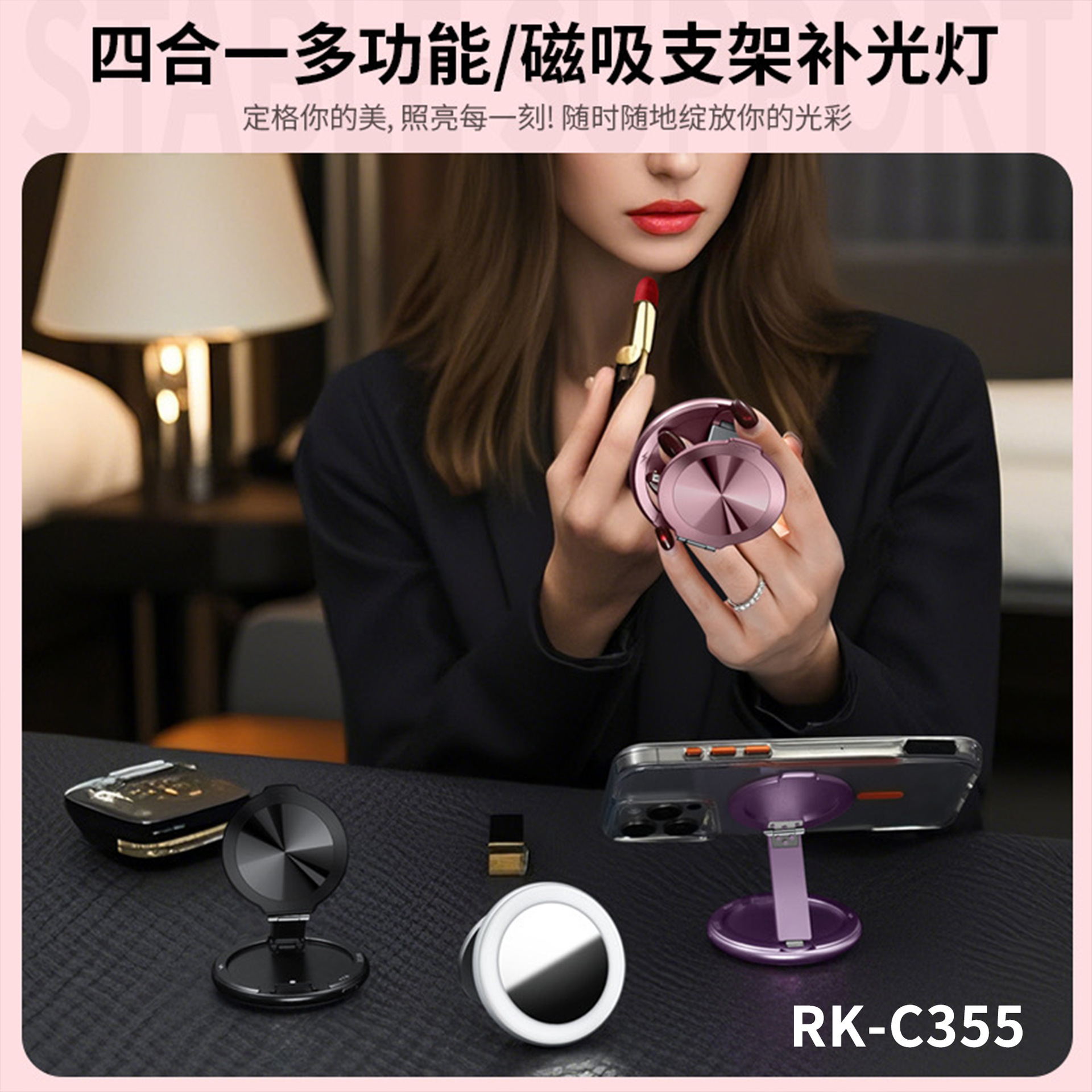 携帯電話生放送撮影美顔ポケットライト多機能携帯デスクトップカメラvlog角型美人脚補光灯