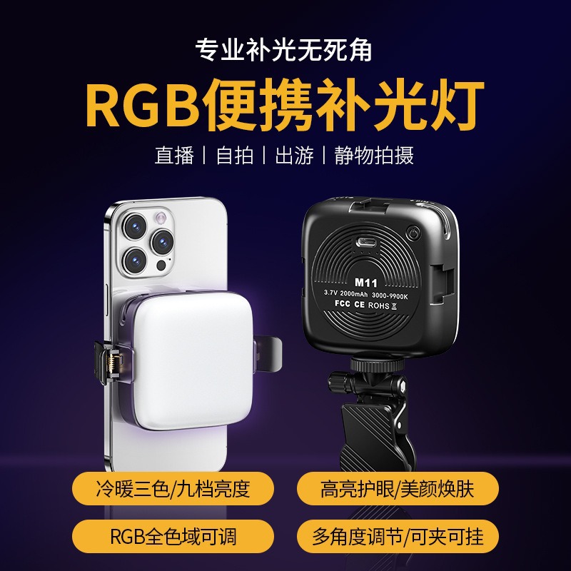 携帯電話用補助光、ポータブル自撮り撮影用手持ちライト、屋外用美顔RGBポケット磁気吸着補助光