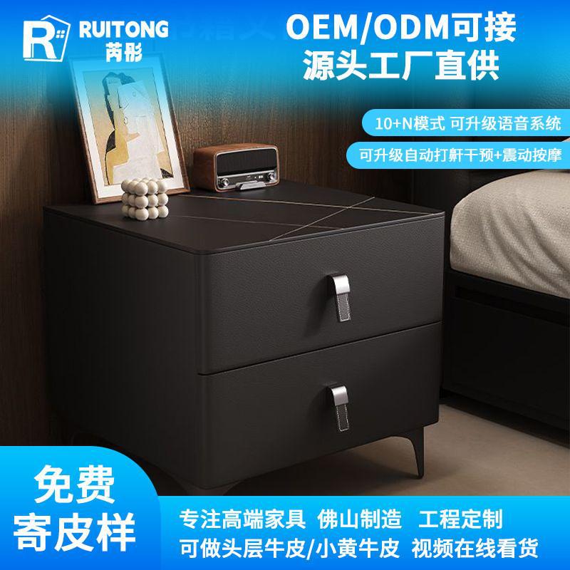 軽豪華タイプの岩板現代寝室キャビネット収納シンプルなベッドサイドキャビネット簡易実木極簡皮質ベッドサイドキャビネット小型