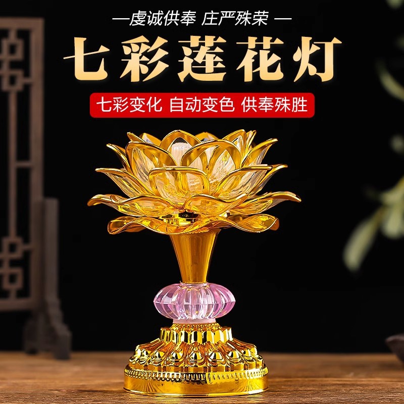 2023新型蓮花灯菩薩仏前供灯長灯家庭用供仏灯七色ledプラグランプ