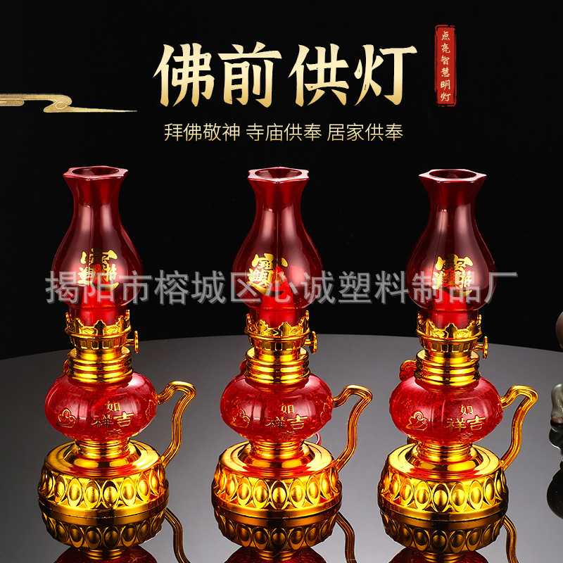 仏陀ランプ、ガラスオイルランプ、仏殿ランプ、ガラスオイルランプ、家庭用防風常夜灯、富の神ランプ卸売
