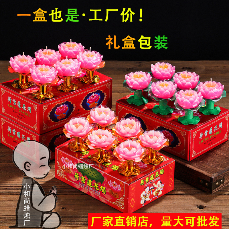 小僧の蓮の花の灯のろうそくの蓮の花は仏陀の家庭のハスの花のろうそくの七色の箱に供えて箱のメーカーを卸売りしたいです。