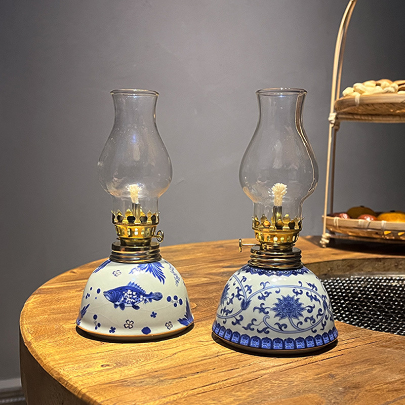 景徳鎮青花灯油灯、酥油灯、民宿茶室灯、仏壇用灯、本固寨陶器灯、LED仏事用灯