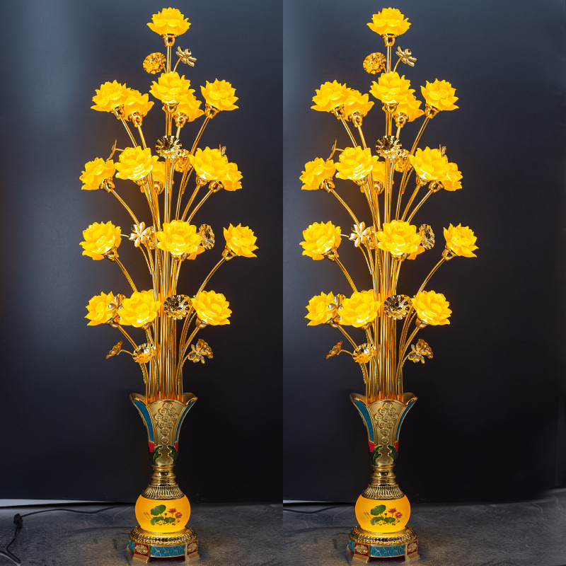 電気旺財双亮蓮花灯LED省エネ家庭用一対の装供仏財神旺財招財蓮花灯台