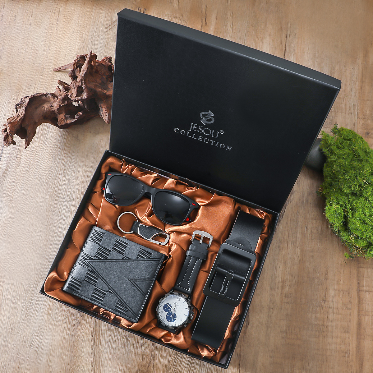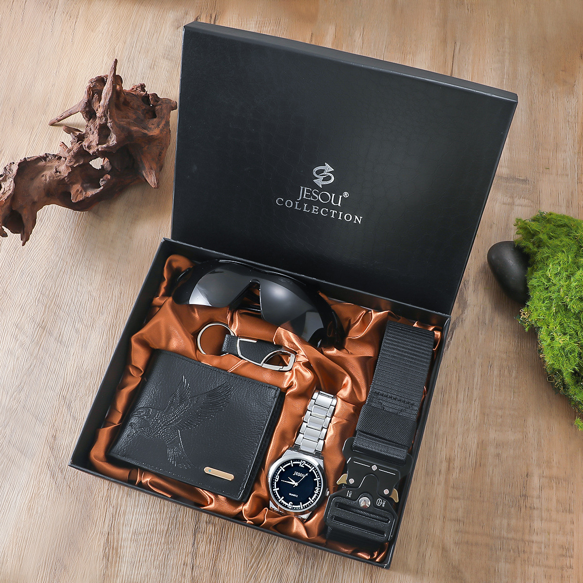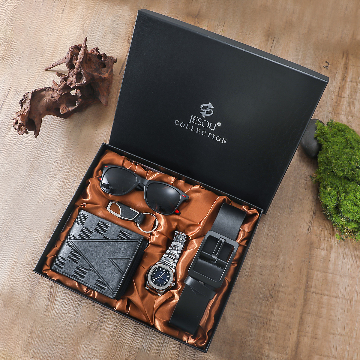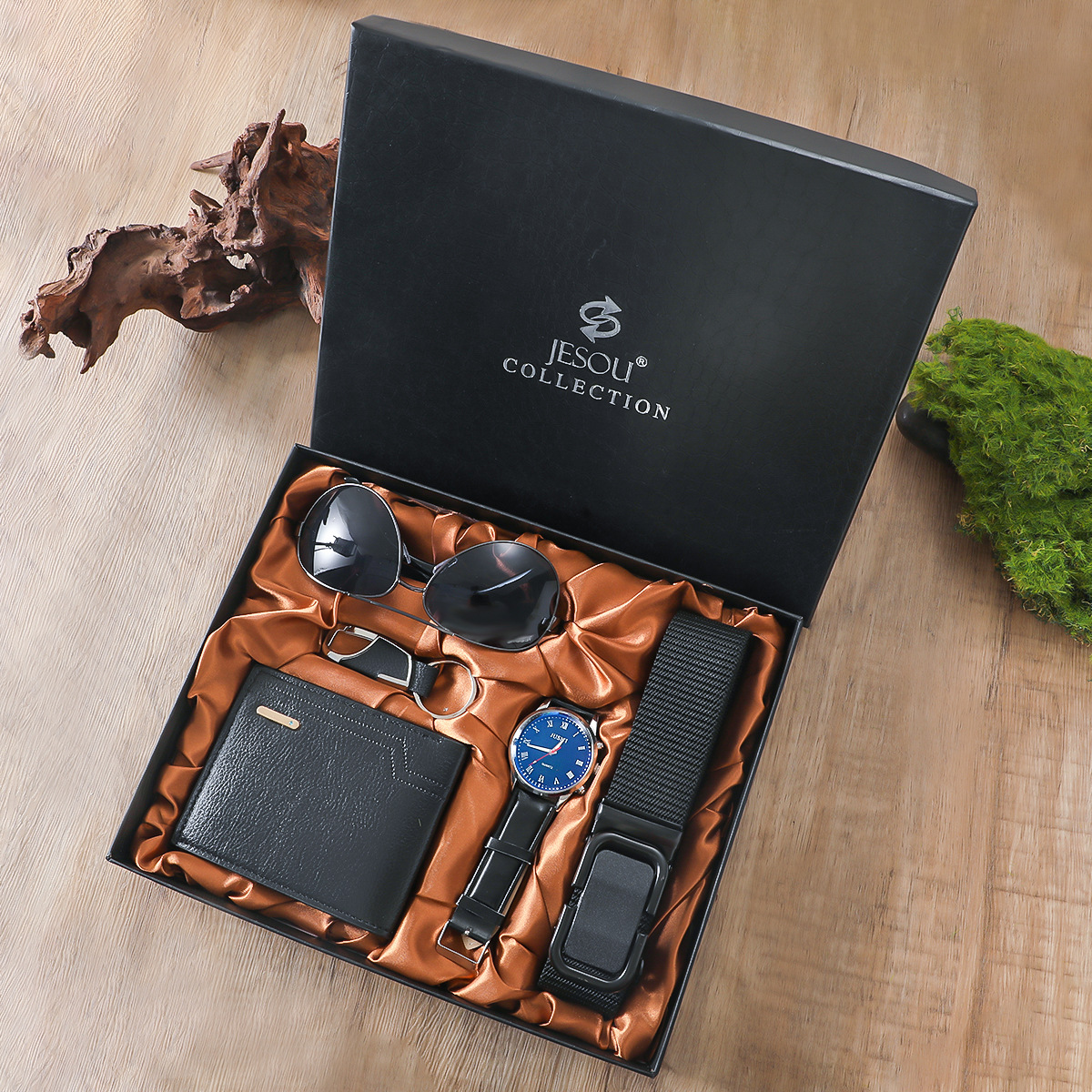 バレンタインおすすめプレゼント高级でクールな5点セット腕时计メガネベルトキーホルダー财布