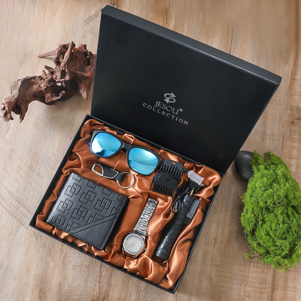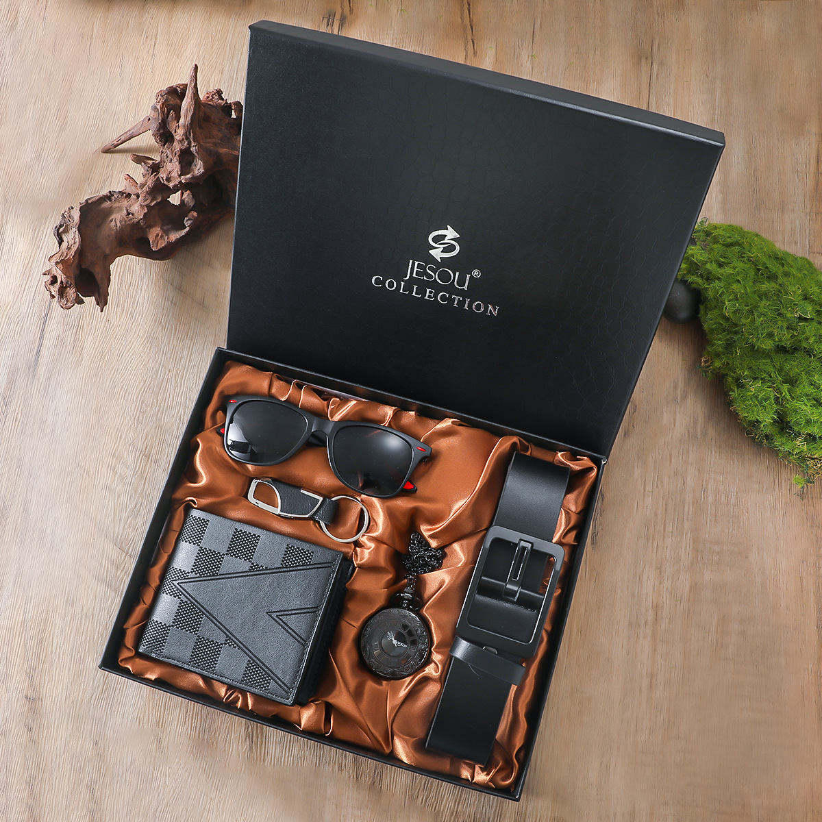 ファッションファッションは機械の男性の時計のベルトのメガネの財布のキーホルダーの高い顔の値の5セットのプレゼントの箱をまねます。