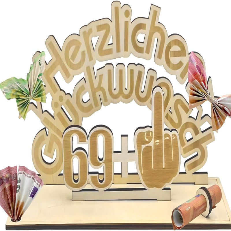 クロスボーダーFunny 80th Birthday Money giftwoodenプレゼント木製中指財布