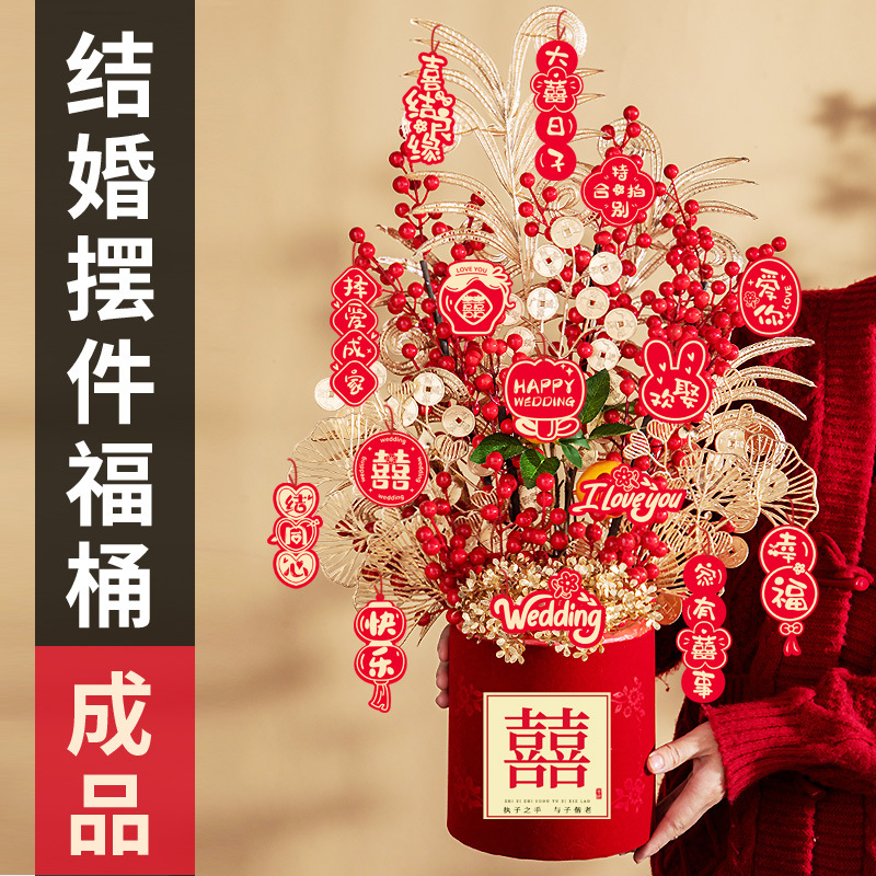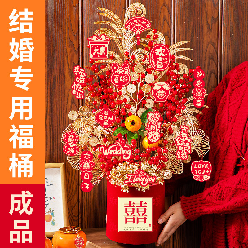 新婚の喜福桶の大紅のお祝いは結婚式の新しい部屋を飾ります。