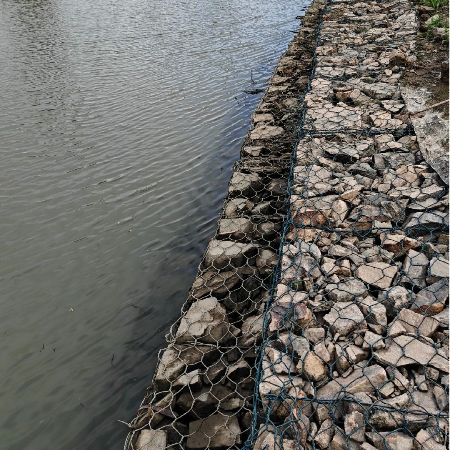亜鉛メッキの蛇籠、プラスチックコーティングされた鉛線籠、洪水防止および洪水対策の六角形のネットバッグ、川の堤防、ガルファンネットケージ