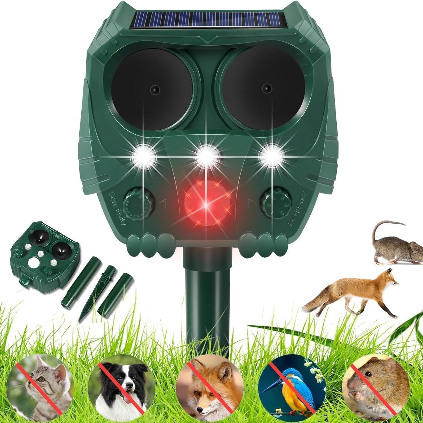 屋外用ソーラー動物撃退器、猫撃退器、犬撃退器、超音波鳥撃退器、赤外線誘導ネズミ撃退器