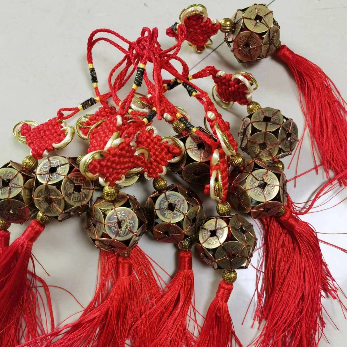 手織り純銅金玉元宝路通中国結自動車玄関ストラップ家庭装飾