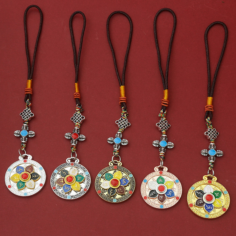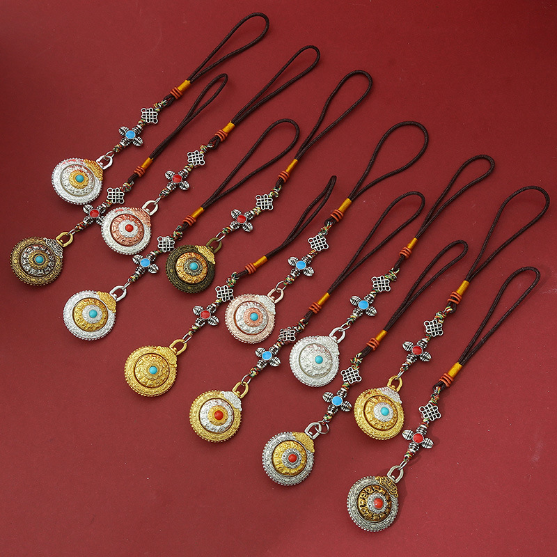 六字真言八吉祥十二生肖九宮八卦の新型チベット式回転車はキーホルダーの現物を掛けます。