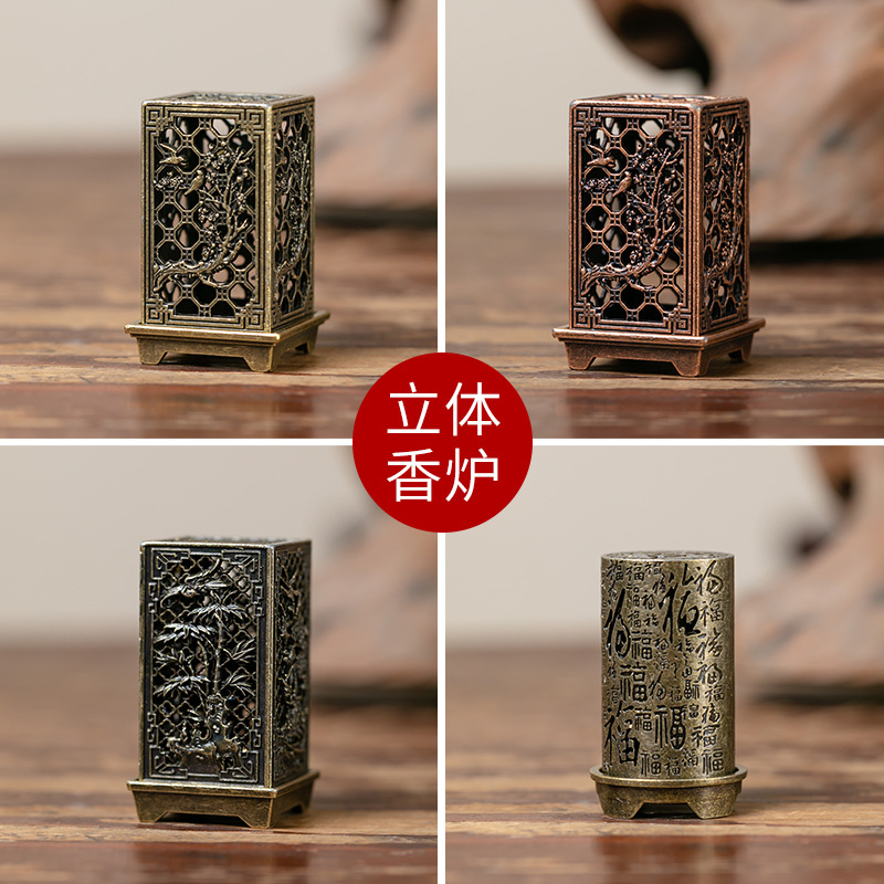 小祥雲盤香炉立式角柱香炉創意合金香薫炉茶道事務置物沈香檀香炉