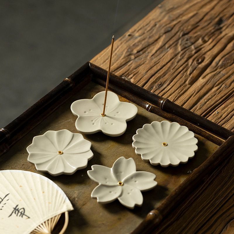 花中国式陶磁器禅意シンプル香托香座室内家庭用線香ベース桜創意香挿し置物