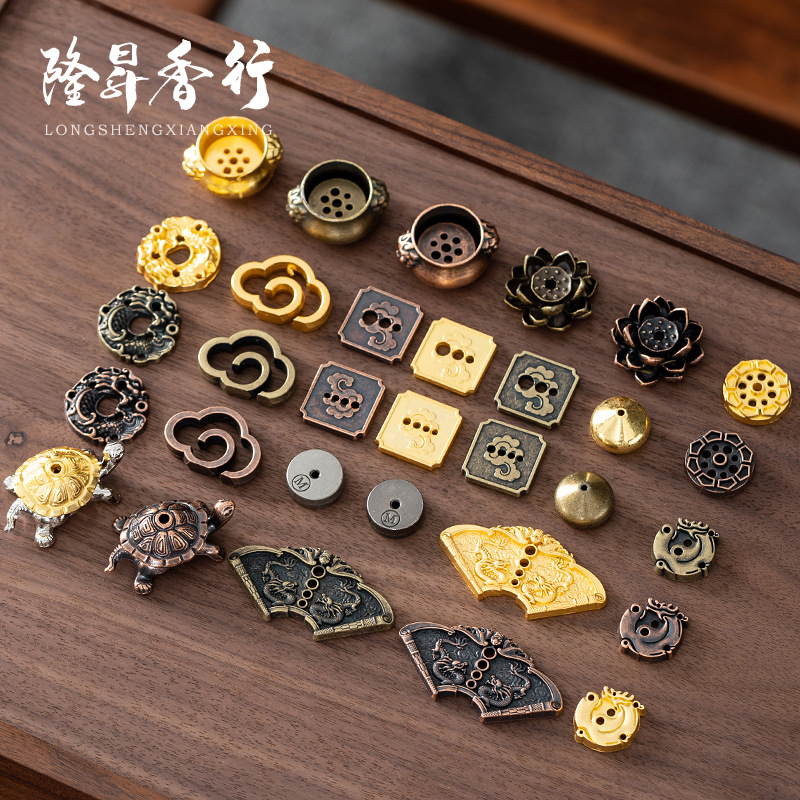 銅瓢箪香挿し九孔ミニ水滴香座亀禅意蓮花線盤香架拉香炉小部品