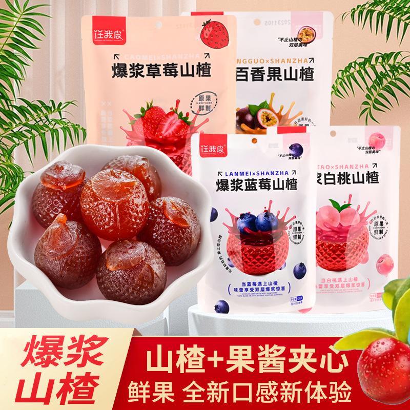 サンザシボールケーキ、ストロベリー、ブルーベリー、パッションフルーツ、白桃の砂糖漬け、果実の皮、子供用スナック