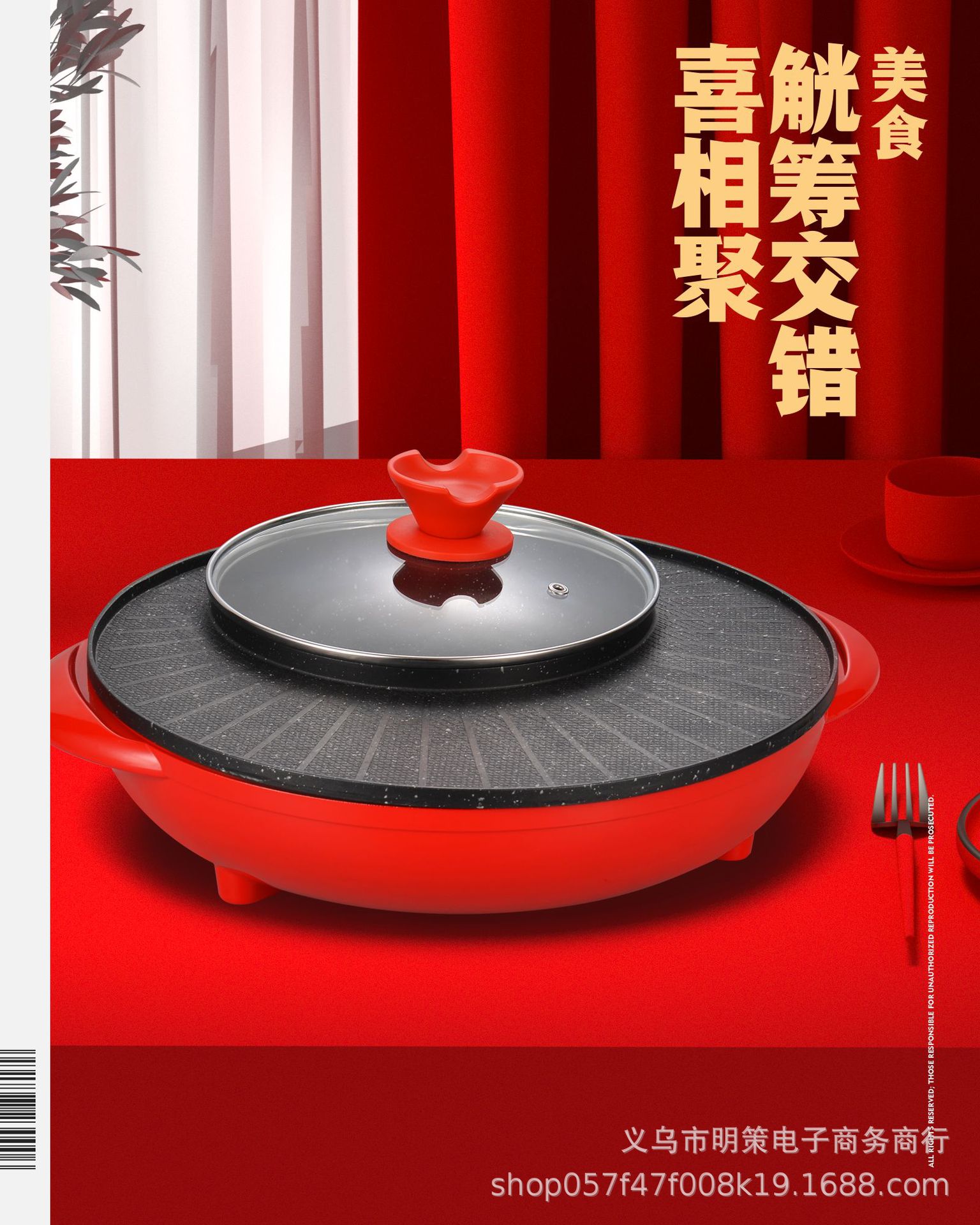 新商品のしゃぶしゃぶ焼き一体鍋家庭用焼きしゃぶしゃぶ電気鍋電気焼き皿