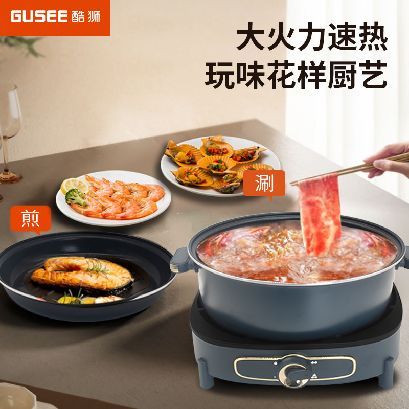 メーカー直供多機能鍋焼き電気煮鍋小型電気鍋一体鍋寮学生鍋しゃぶしゃぶ焼き一体
