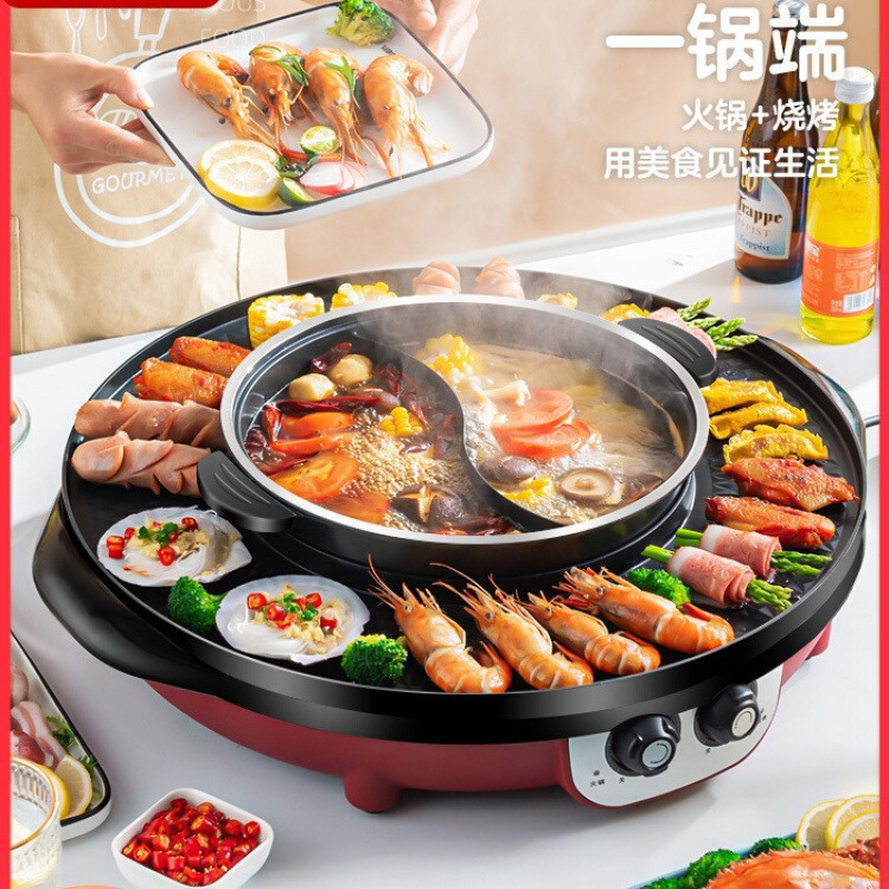 多機能火鍋電気オーブン一体鍋家庭用韓国式焼き皿しゃぶしゃぶ焼き両用焼肉焼き魚機