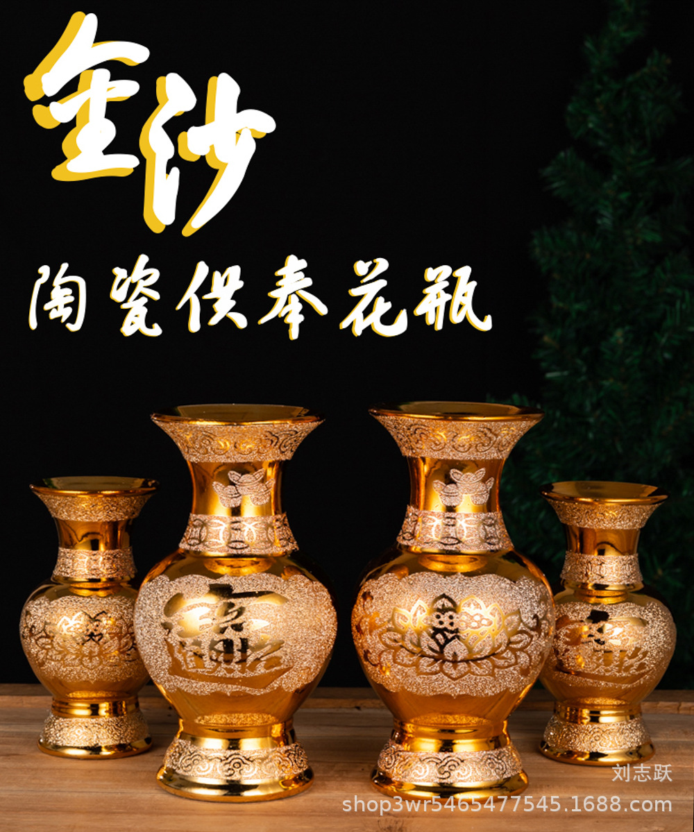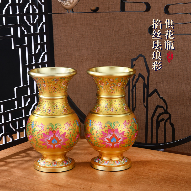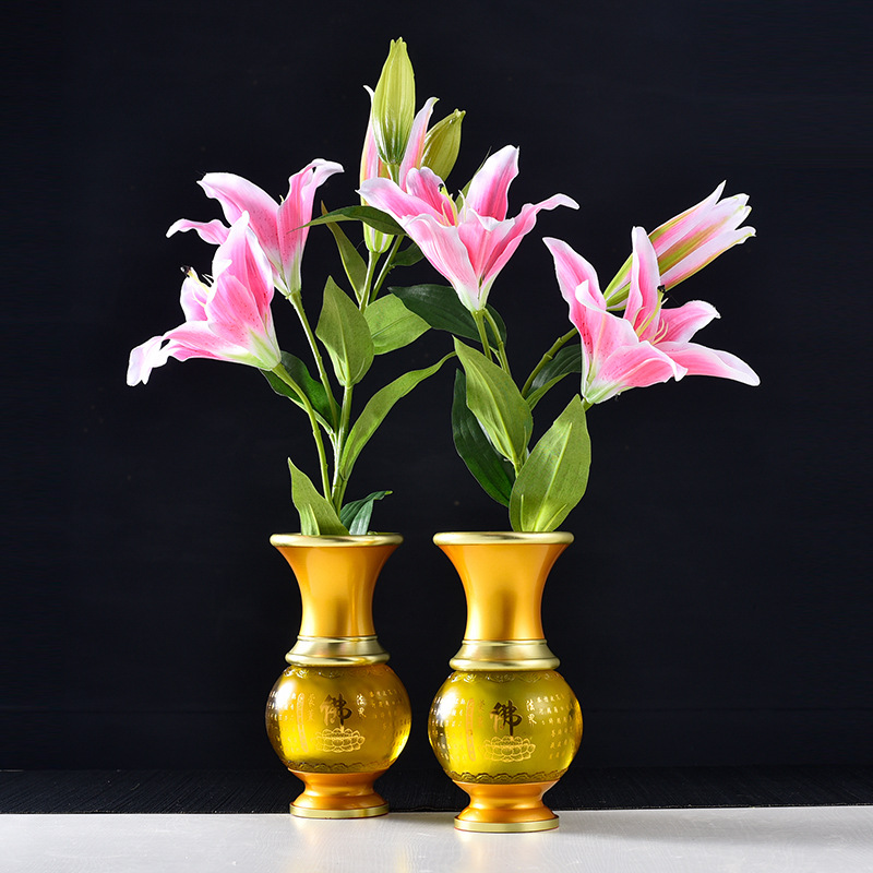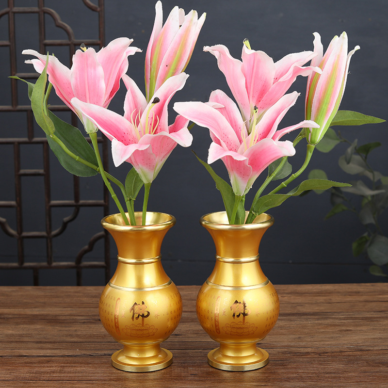 家庭用の金の合金の蓮の花は仏の花瓶の仏前に生け花を供えて菩薩の財神の仏堂の置物を供えます。