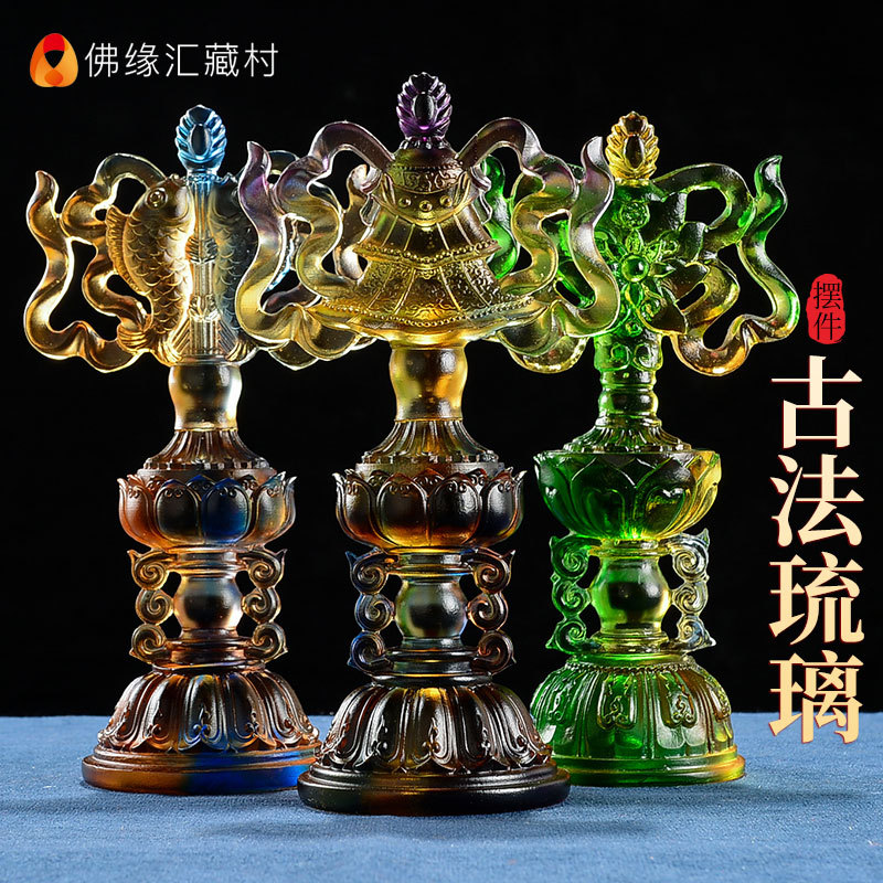 八吉祥置物仏事用品置物宗供仏古法瑠璃仏前吉祥八宝瑠璃置物セット