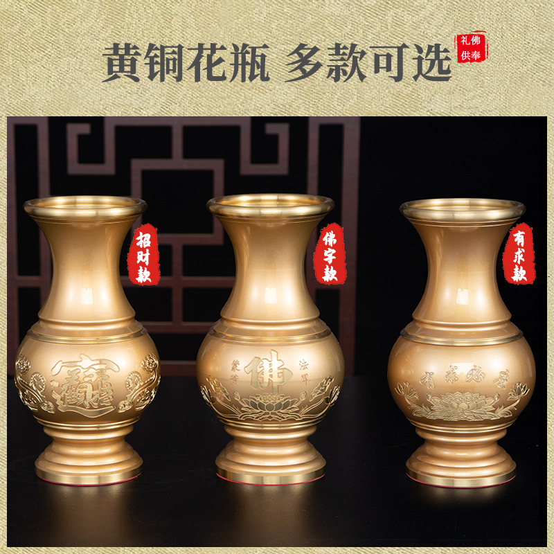 高級家庭用純銅合金供仏花瓶観音浄水筒招財蓮花瓶仏前供生け花竹瓶