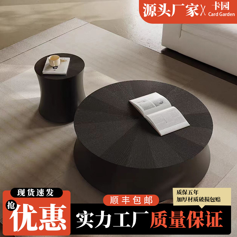 スレートラウンドコーヒーテーブルリビングルームホームライト高級モダンシンプル大小サイズブラックテーブルイタリアのミニマリストスタイル