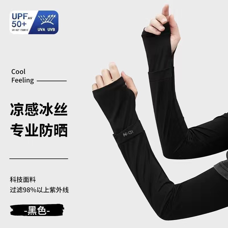 新型ケースアイス袖カバー日焼け止め紫外線防止アウトドアサイクリング純色腕カバー露出指男女アイススリーブ