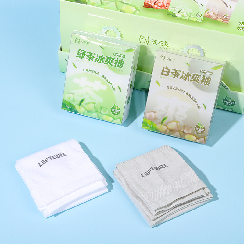 Zuozuo 女性用アイススリーブ 日焼け止めスリーブ 大人用 緑茶ギフトボックス入り アイススリーブ スポーツ冷却スリーブ 卸売 外国貿易 紫外線防止