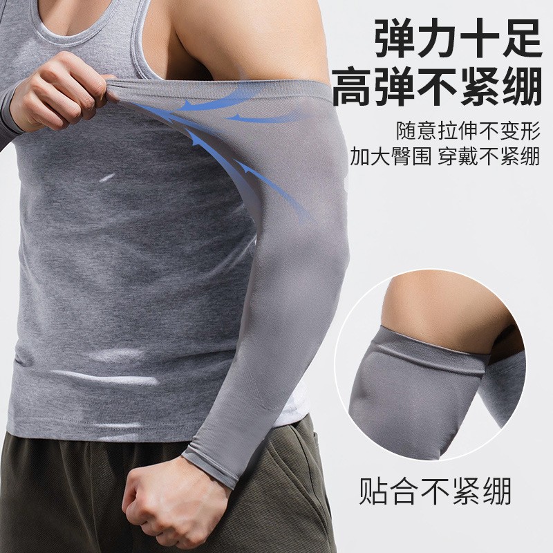 夏の氷糸日焼け止め袖カバー男性氷袖運動防護延長ゆったり運転男性用アームカバー