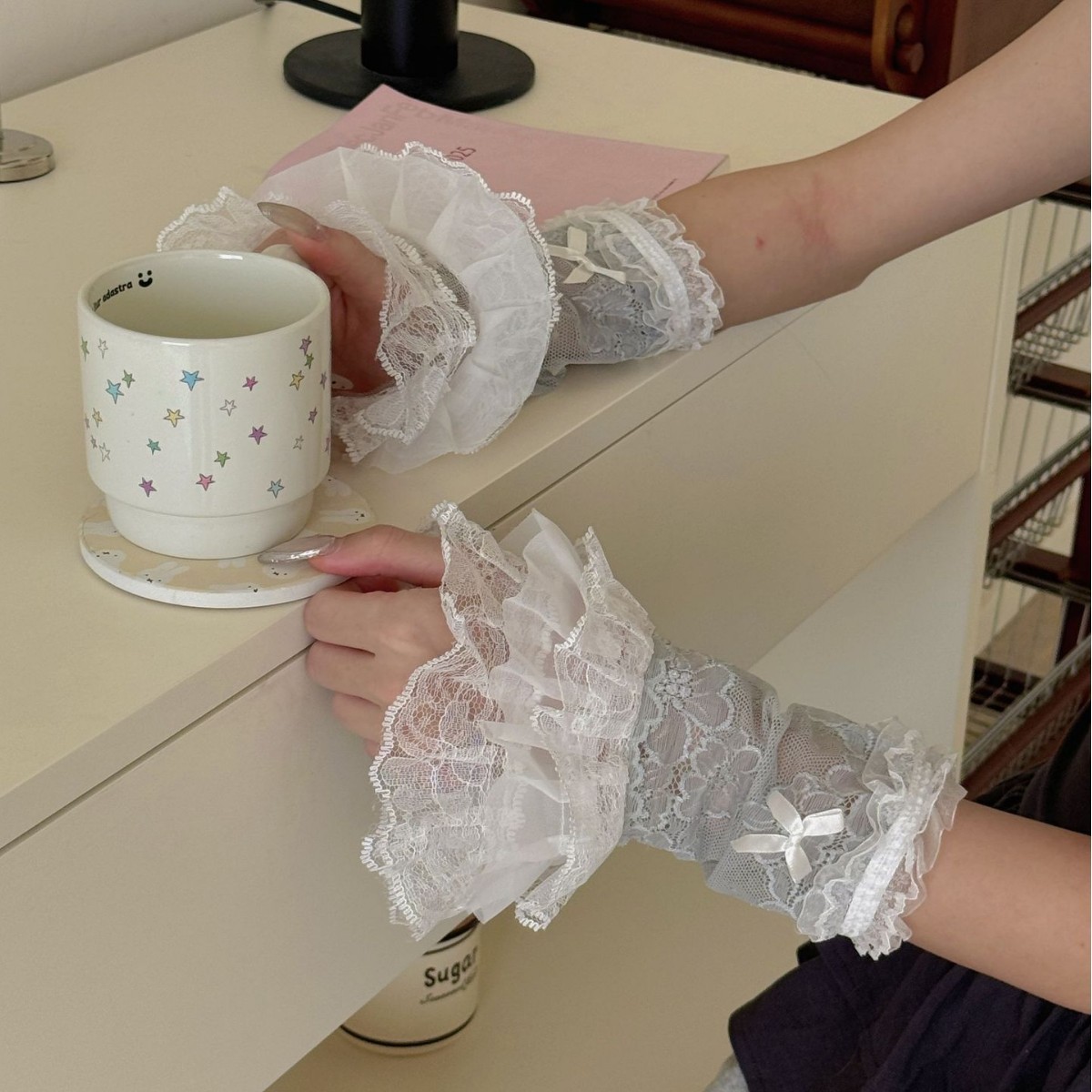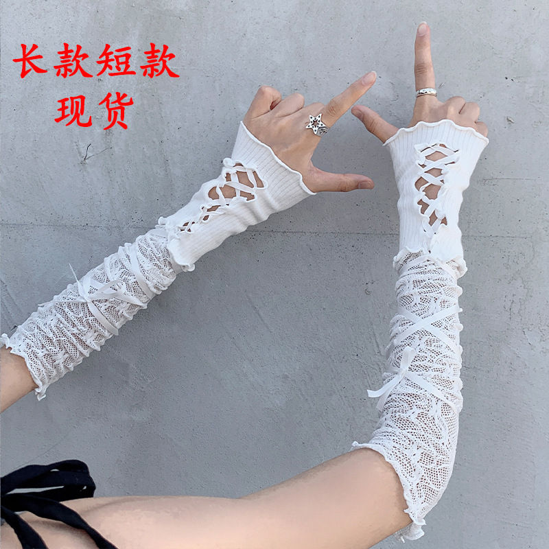 Lolita手袖長いレース手袋女性高級感日焼け止め袖カバーギャルセクシーストラップ腕袖薄いタイプ