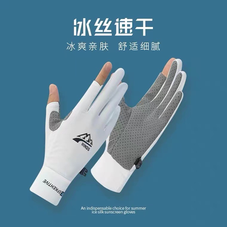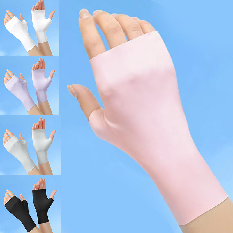 日焼け止め手袋女性夏紫外線防止滑り止め電車で運転する薄い日よけタッチパネル氷糸手袋男