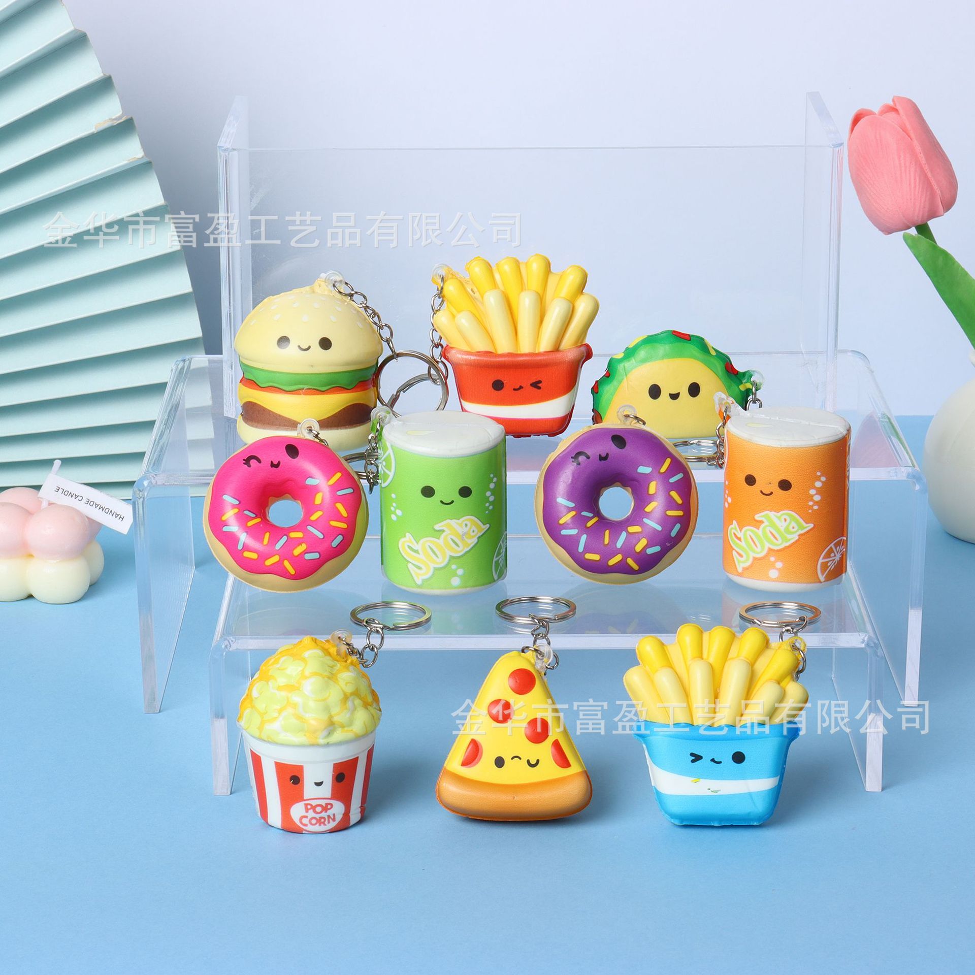 Puスローバックシミュレーショングルメキーホルダーハンバーガーピザフライドポテトつまみ子供ストレス発散玩具卸売り