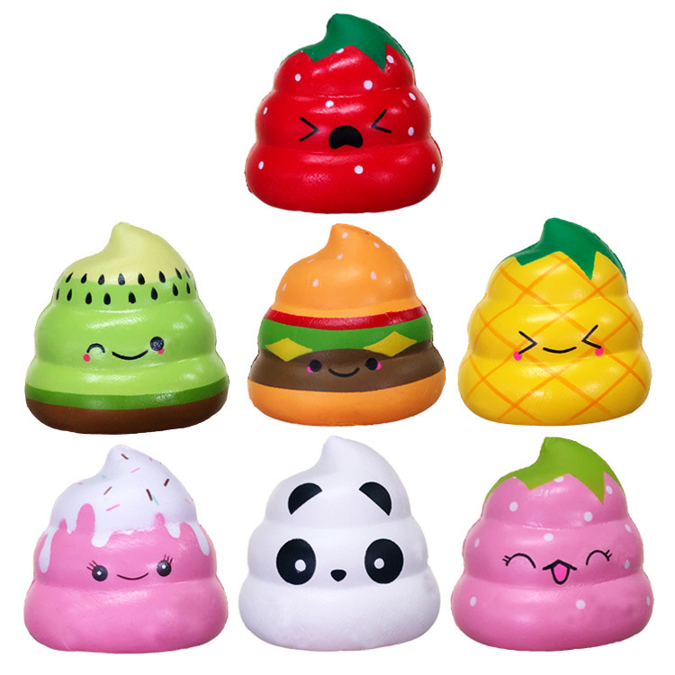 PUフォーム製のかわいいフルーツ型のゆっくり戻るハムバーグスクイーズおもちゃ、うんち型おもちゃ、つまむと楽しい、小さな鼻が付いたペンダント