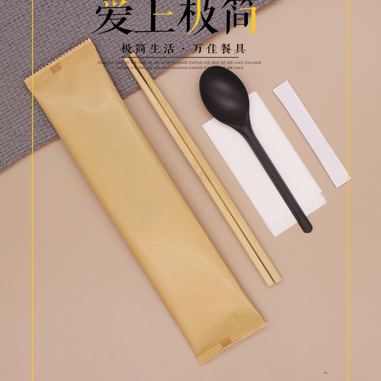 使い捨て箸四点セット高級卸売り食器セットの販売ファストフード業務用箸空白純色クラフト紙