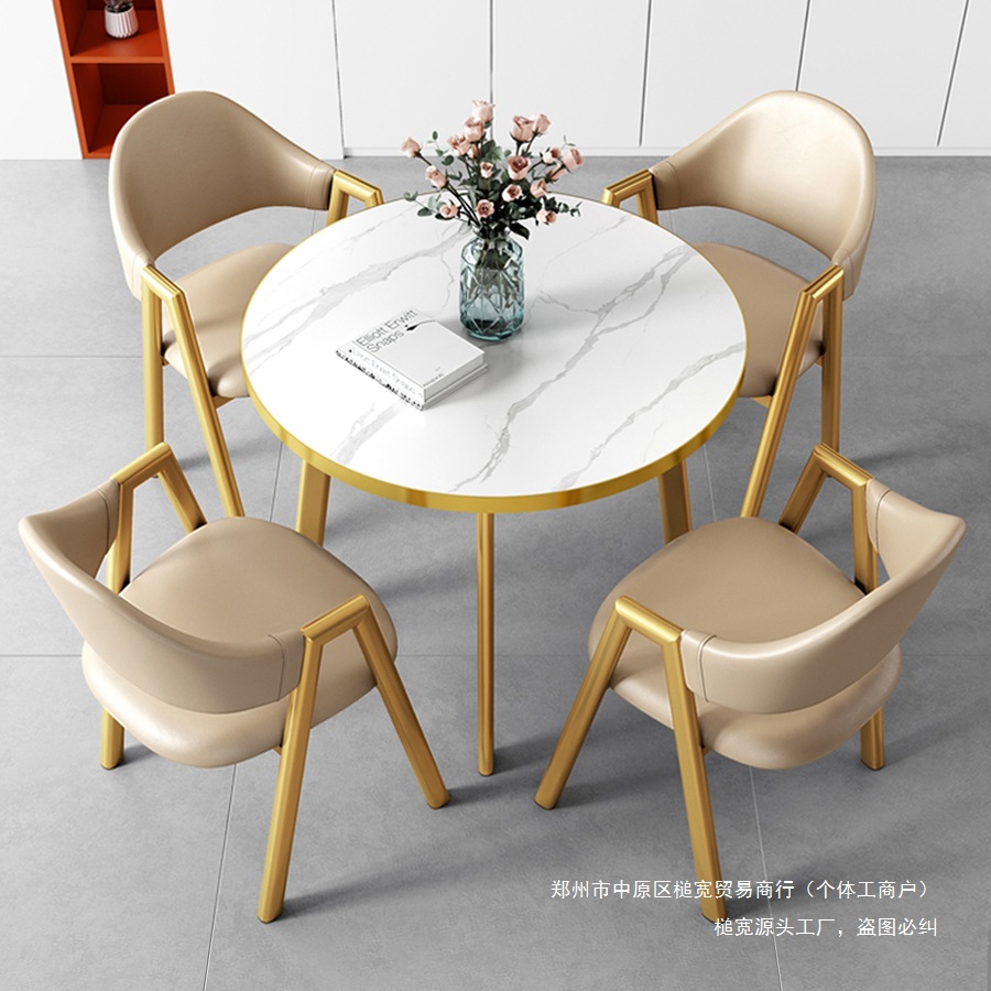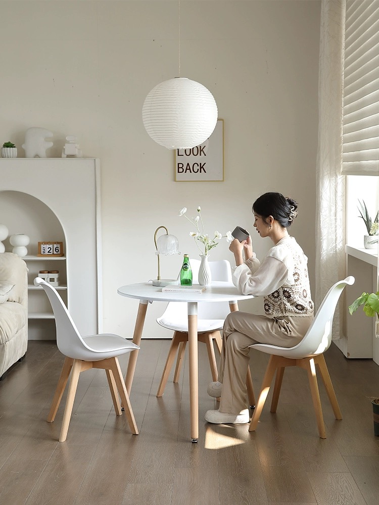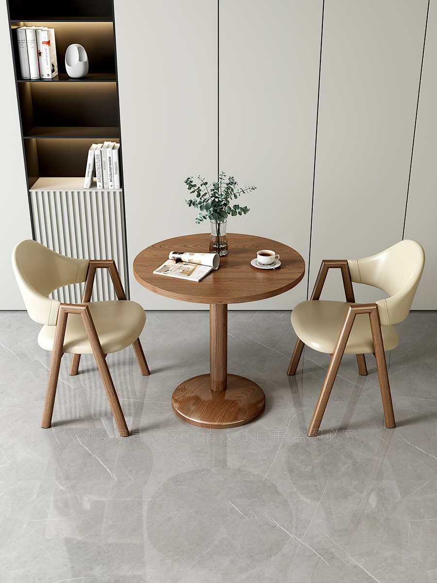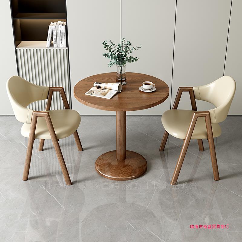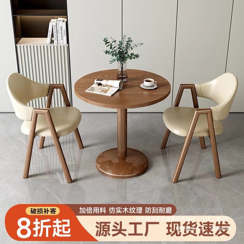 北欧模造無垢材交渉ダイニングテーブルと椅子の組み合わせモダンシンプルな小さなアパートクリエイティブレジャーラウンドテーブルミルクティーショップチェア