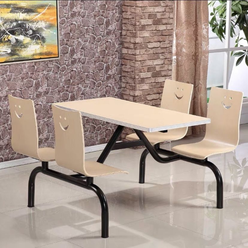工場ステンレス鋼学生食堂ダイニングテーブルと椅子の組み合わせ4人用食堂学校スタッフレストランテーブルと椅子一体型