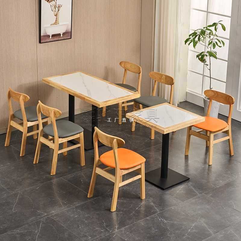 ✅ 無垢材ファーストフードレストランのテーブルと椅子の組み合わせデザートミルクティーヌードルレストラン軽食レストラン食堂レストランケータリング商業テーブル