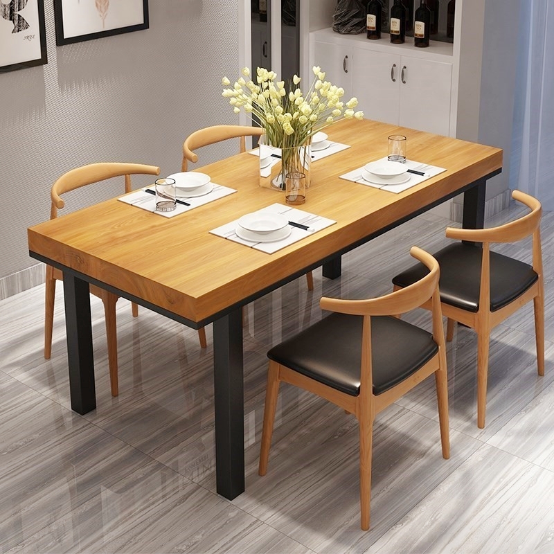 N5アメリカ式鉄芸長方形実木テーブルと椅子の組み合わせカフェレストラン乳茶店ホテル麺館火鍋テーブル