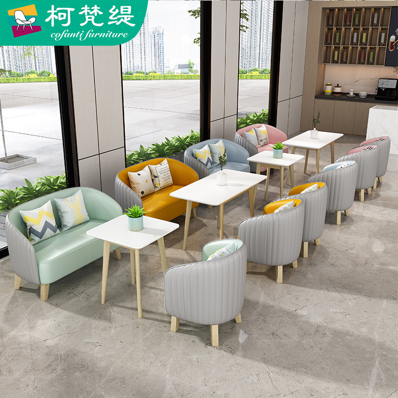 ネット有名人ミルクティーショップのテーブルと椅子とソファの組み合わせ、新鮮でシンプルな受付と商談のテーブルと椅子、カフェバーのバーソファ