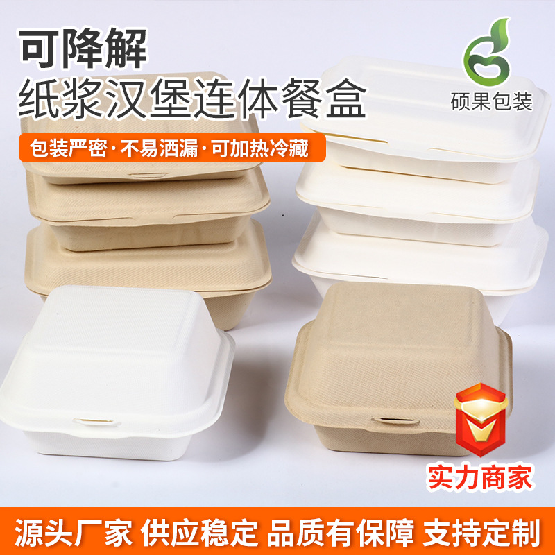 使い捨て分解可能な包装箱パルプ弁当箱ファストフードアメリカ風ハンバーガー箱蓋付き弁当箱ロック箱アメリカ風