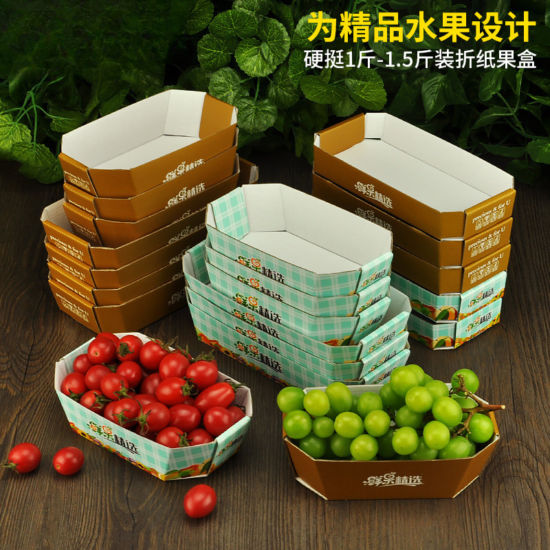 T9j5環境保護使い捨て折り紙果物箱蓋なし船型ブドウ包装箱カード紙トレイ精品金色