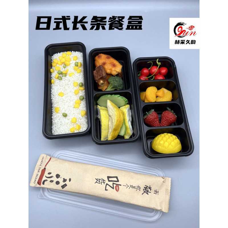 日本製ロング3つ仕切りと4つ仕切りの小皿テイクアウト包装箱使い捨てプラスチック弁当箱蓋付き