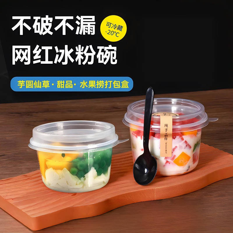 フルーツボウル使い捨て冷湯元子ボウルタロイモ団子糖水ボックスアイスパウダーデザート持ち帰りボウル蓋付きアイスパウダー専用