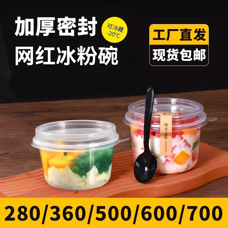 シンプルな芋の丸い碗の果物は丸い箱をすくって使い捨ての氷の粉の碗の大きいサイズの砂糖の水の箱をすくって密封して漏れません。