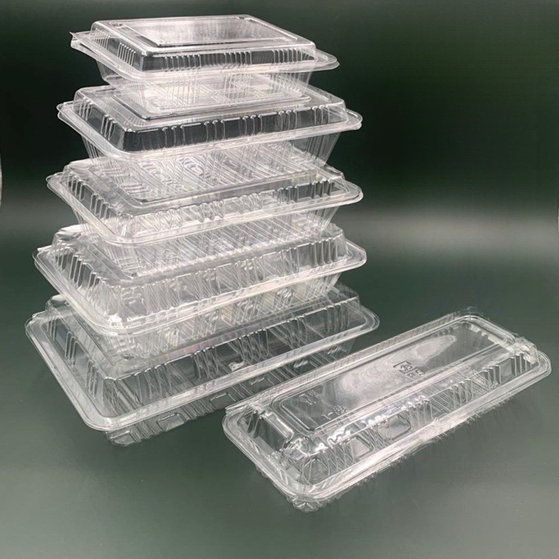 透明な使い捨て寿司箱野菜箱ペストリー箱肉巻き箱長方形食品箱プラスチックの出前包装箱